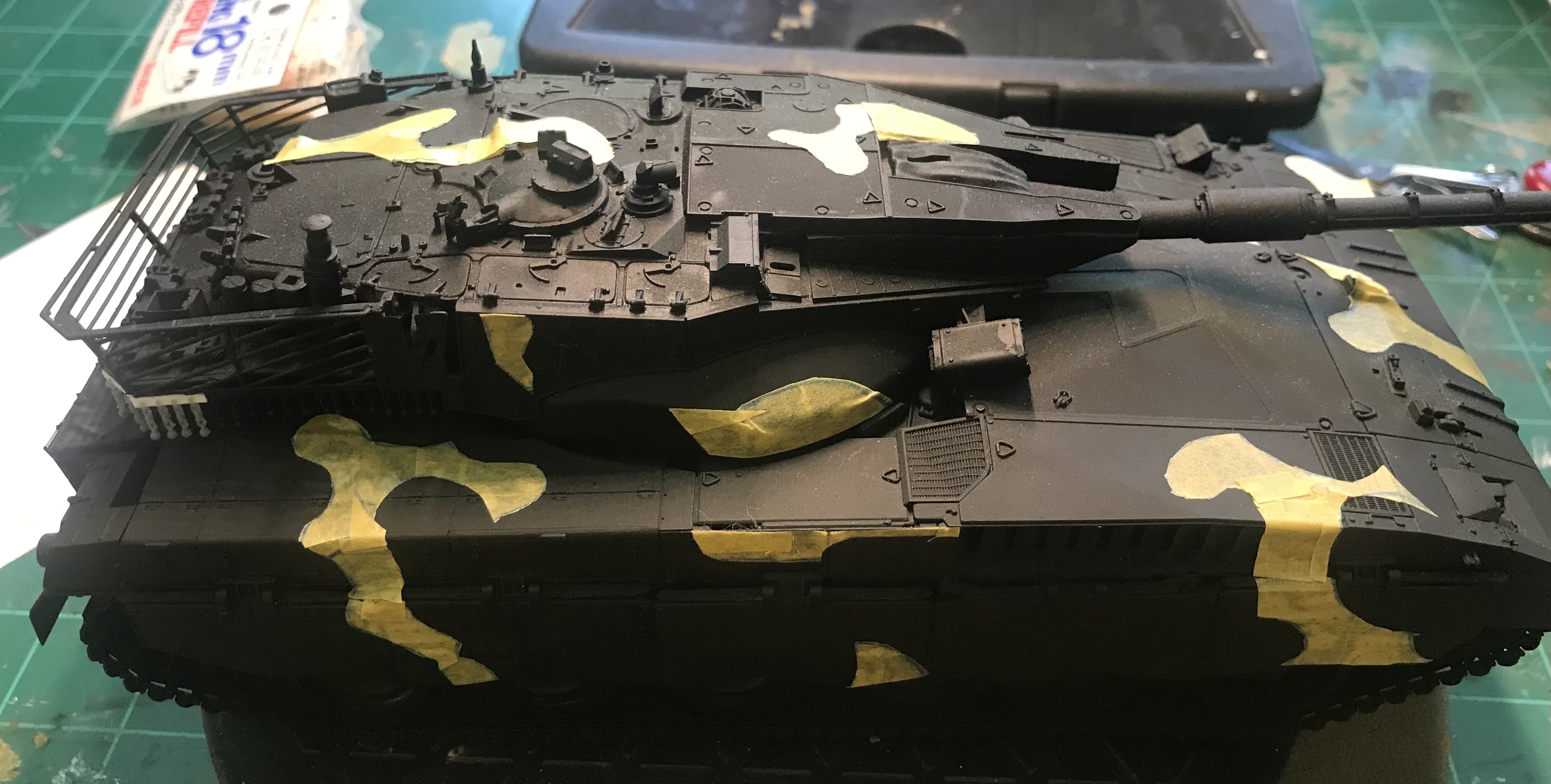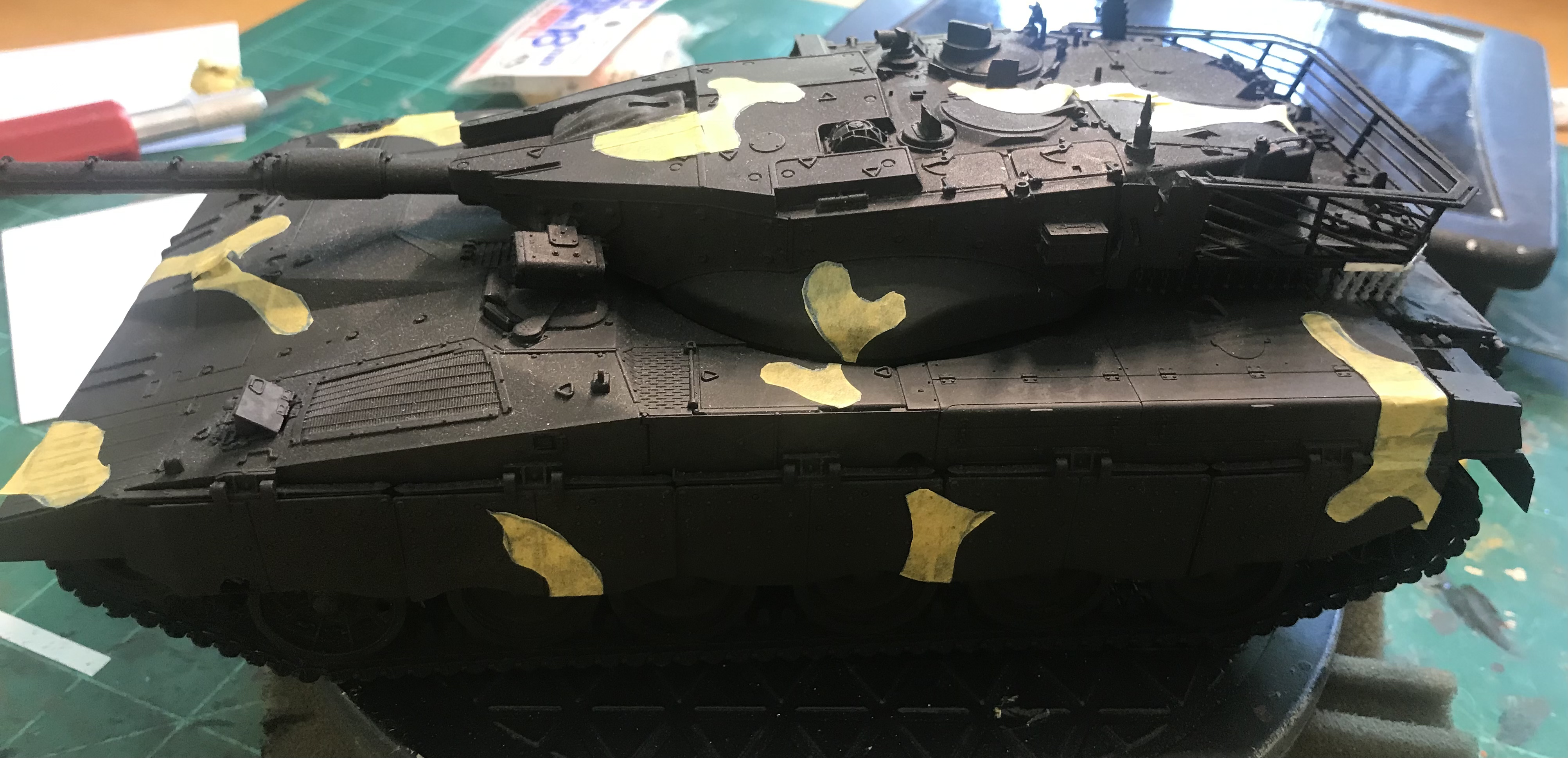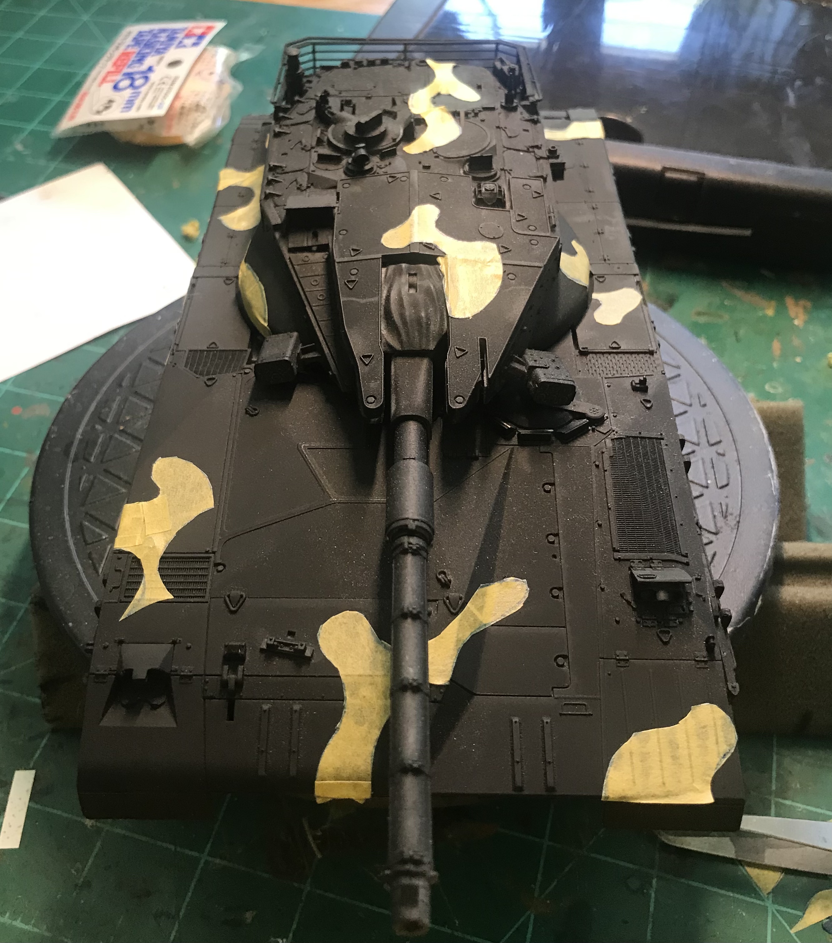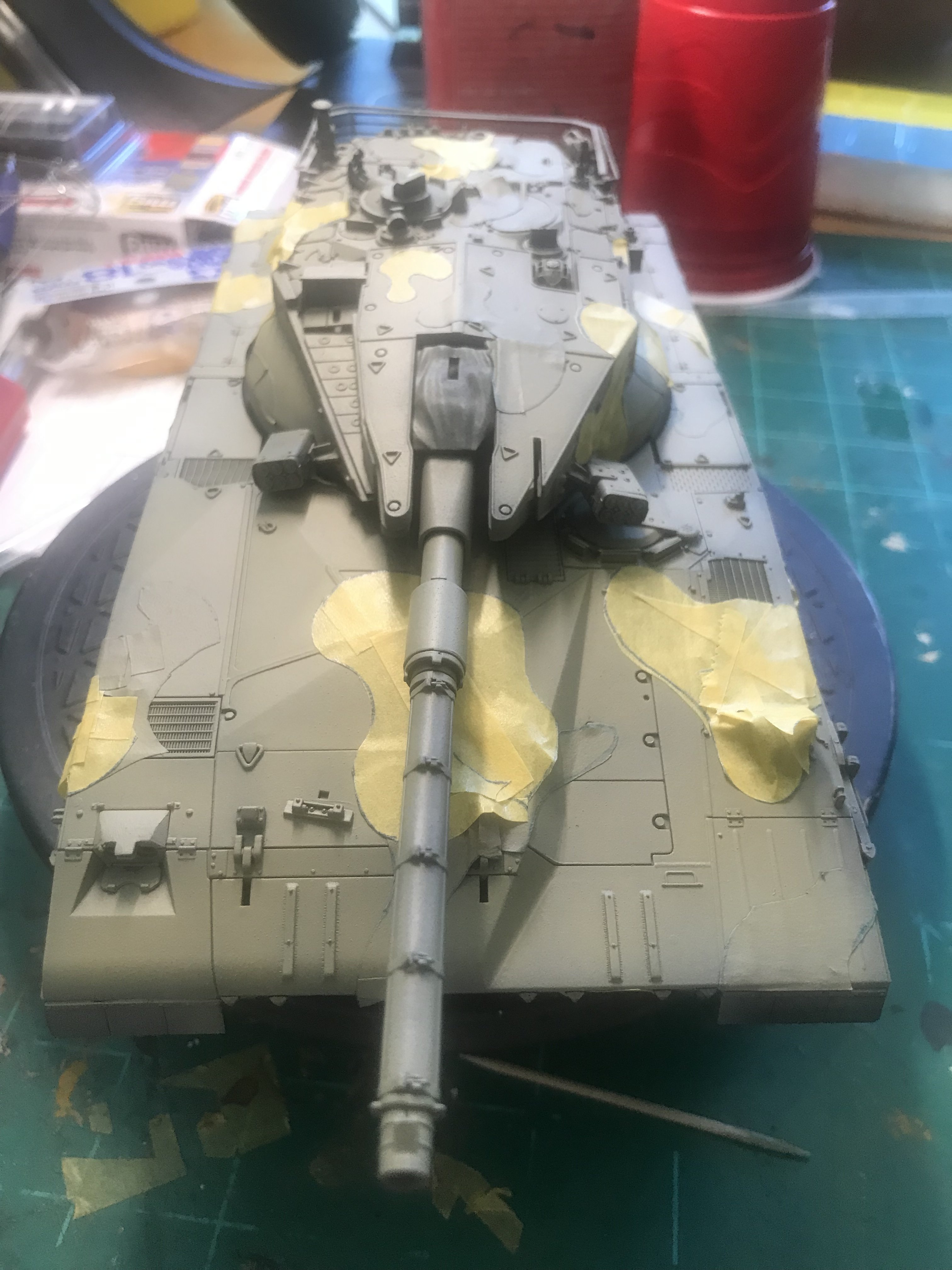 Next up was an old bottle of Model Master Armor Sand, and the requisite masking