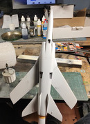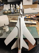 For the Mirage not much has happened so far, a few repairs of some very tiny holes, some sanding of mold errors but not much and the two fuselage halves are glued together