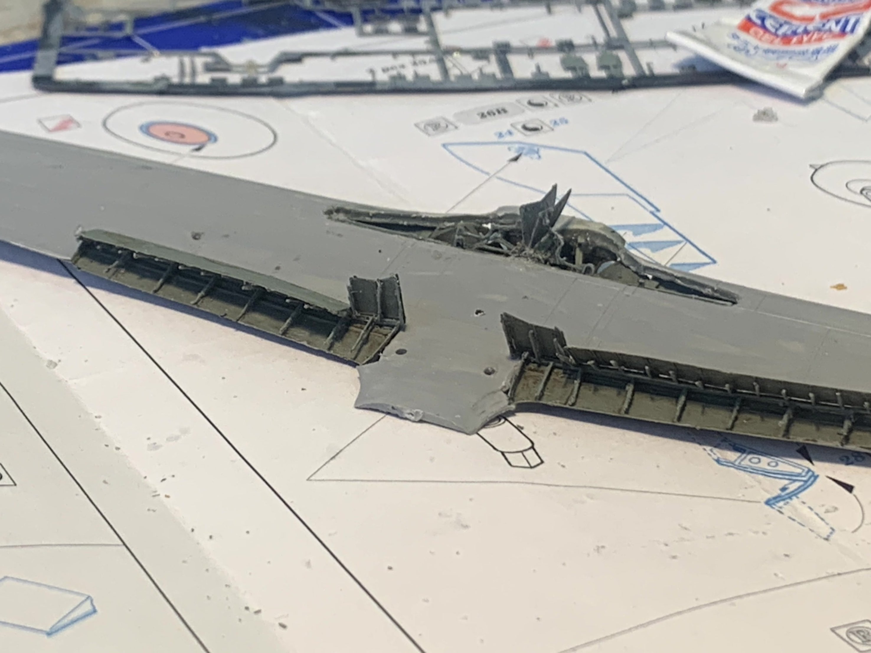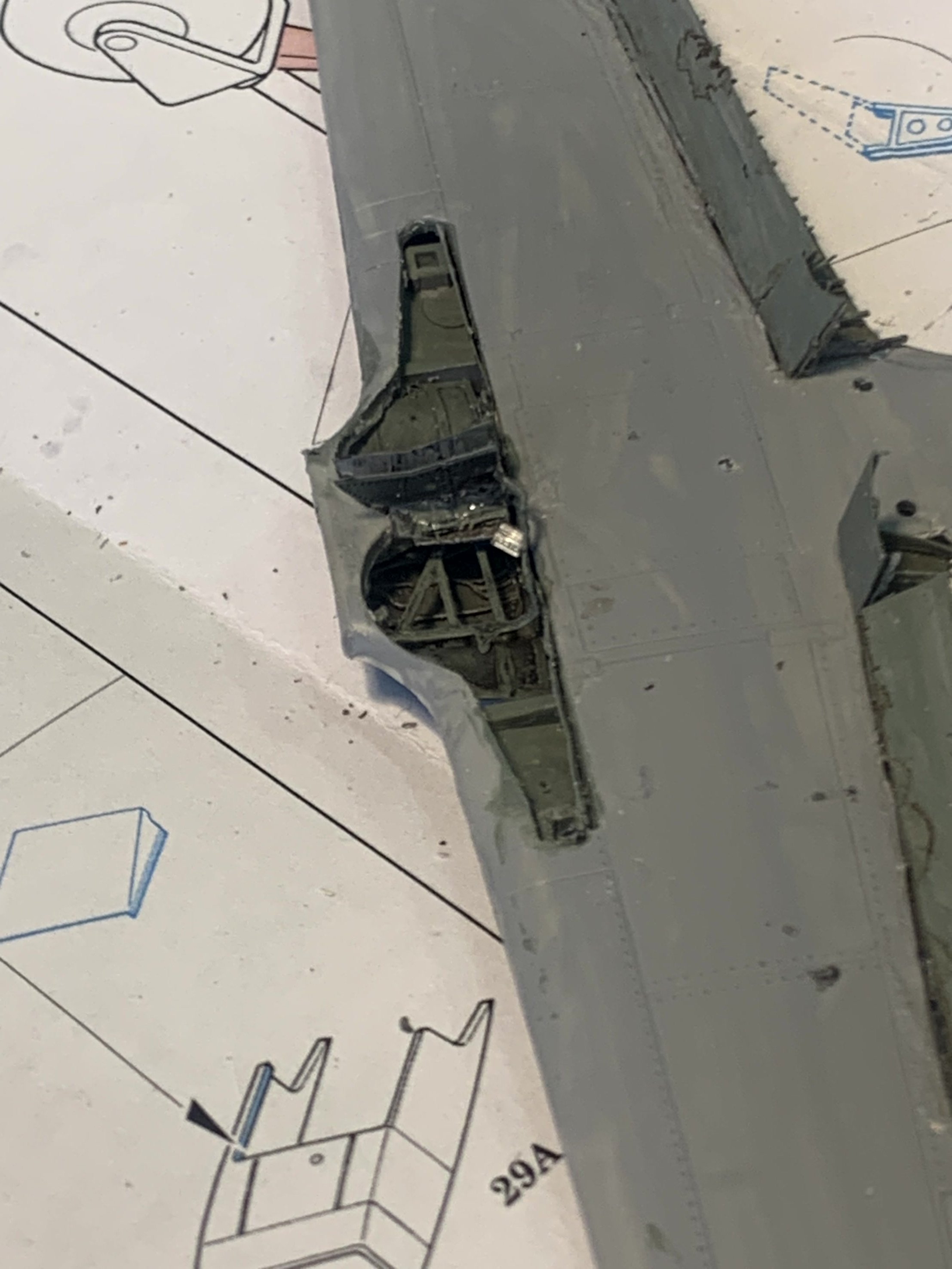 So quite a bit of progress. Assembly is finished, as usual the flaps were a bit of a nightmare and the whole landing gear bay had so many intricate fitting parts that it took me days to get them "right" (a.k.a. as well as I could). There is still some filling and filing to do but I hope I can get the painting started on the weekend.
