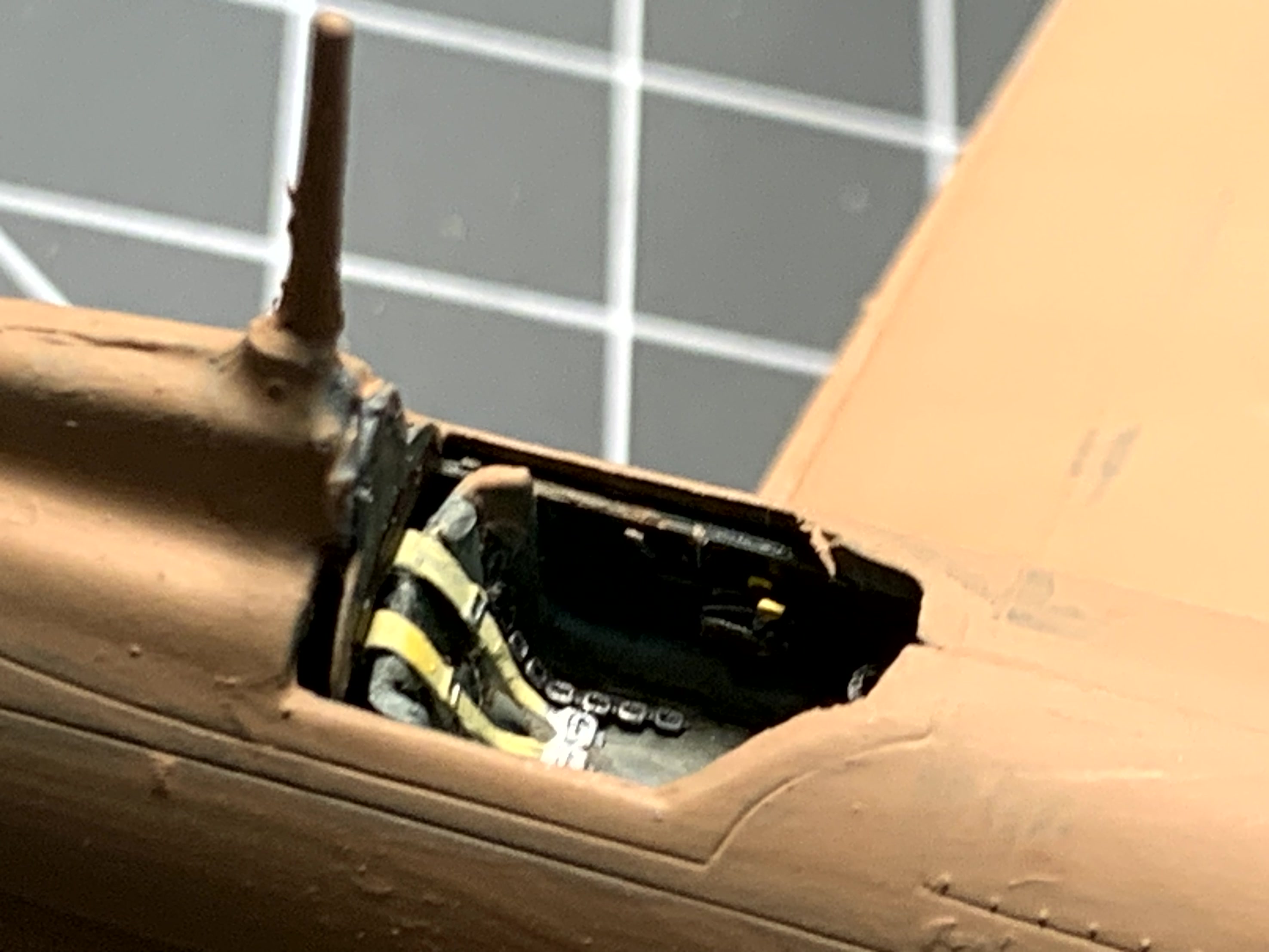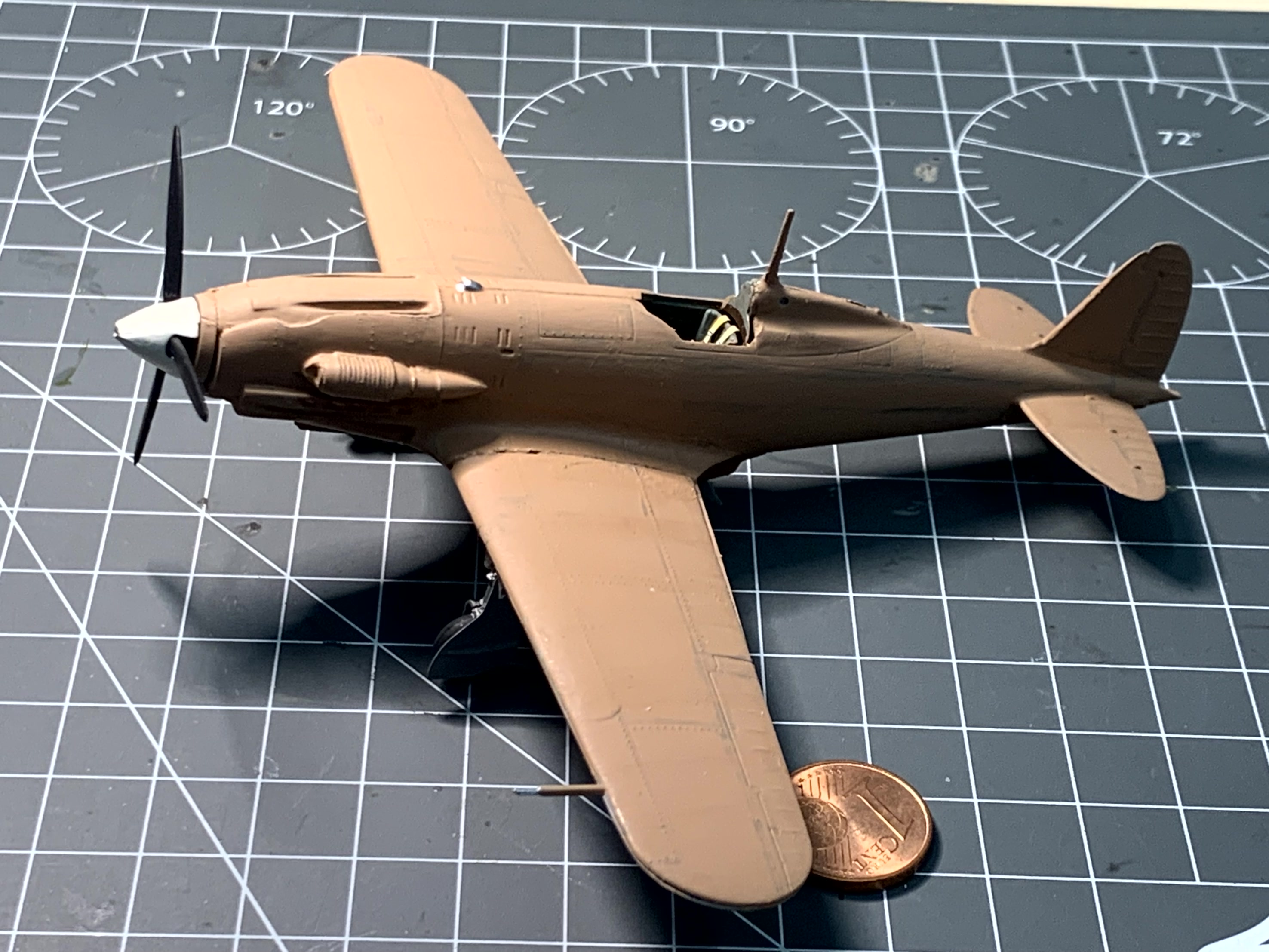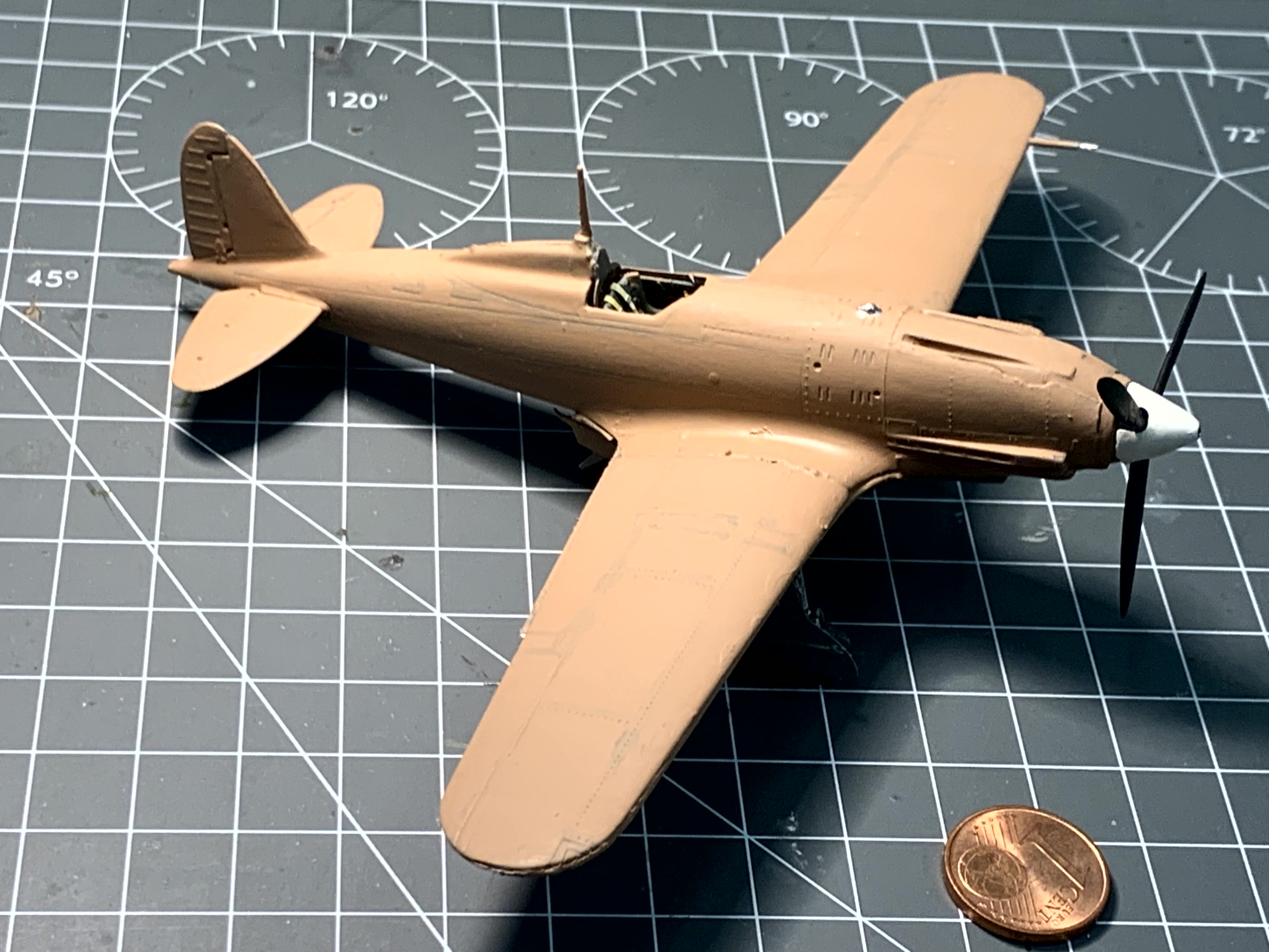 Time for painting. This is the pre-shading with some diluted Vallejo Black and then on to Nocciola Chiaro (FS 30219), also from Vallejo. Then I will begin the camouflage itself. At least so far its all smooth..