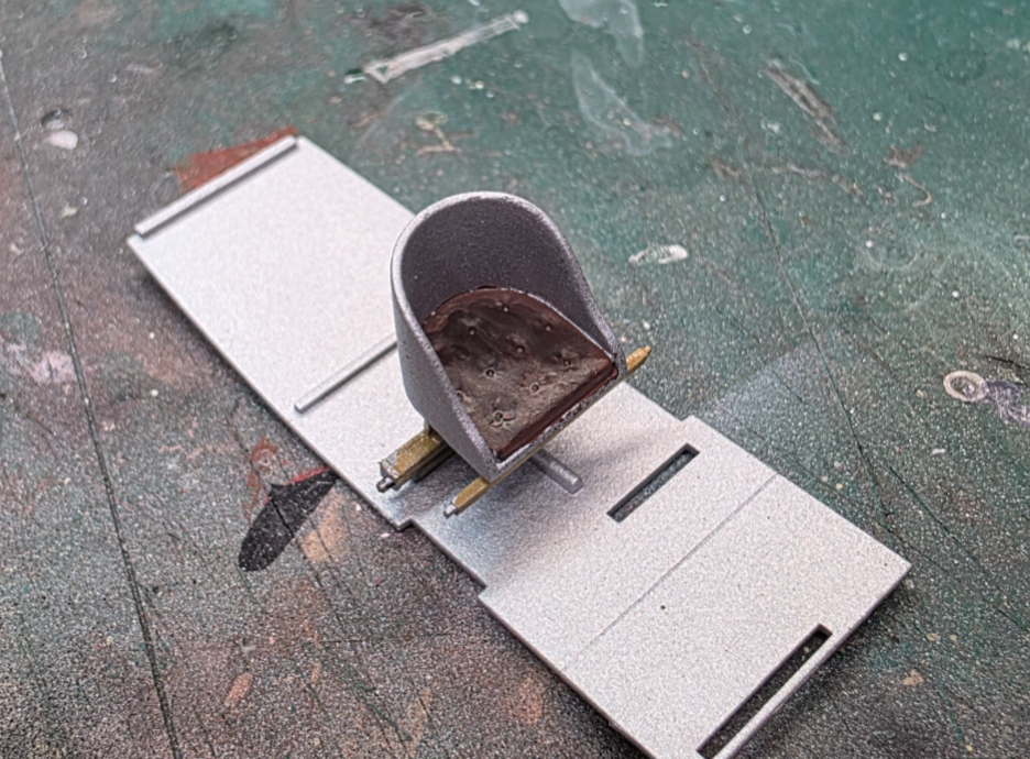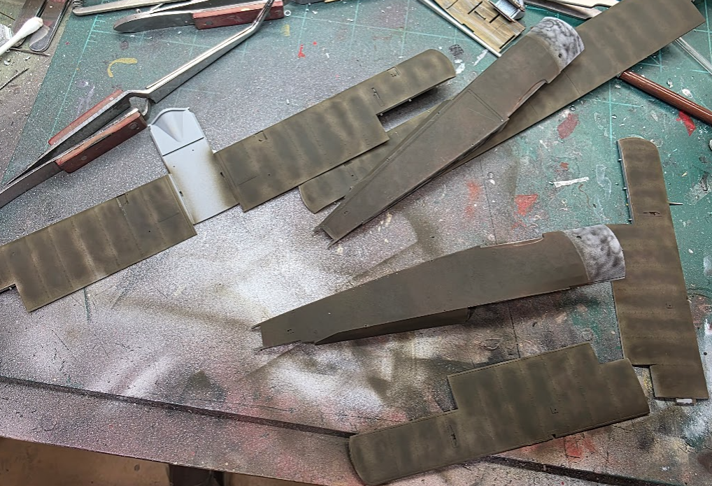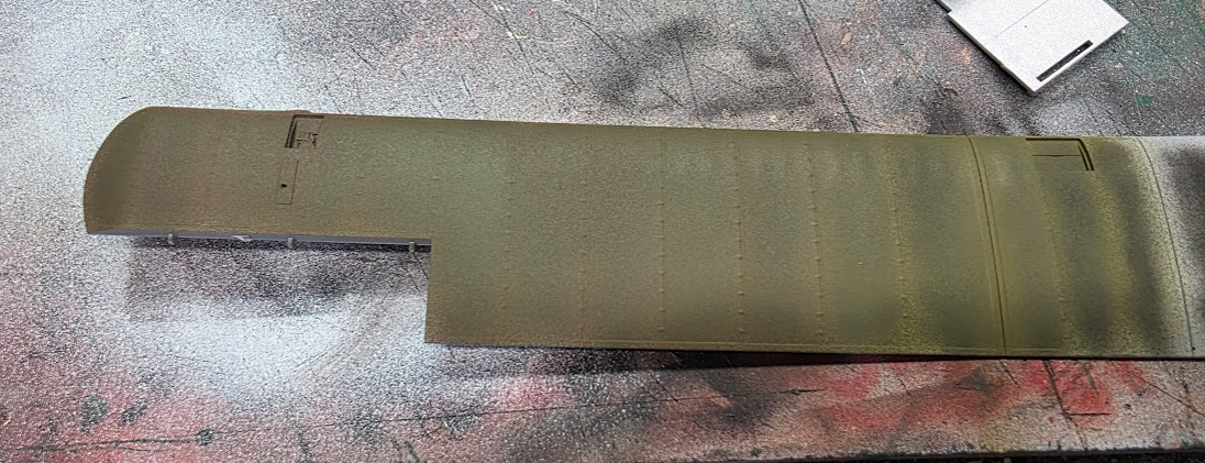 What you see on the far right is just the xf62 over primer and preshade. From the wingtip to about the mid section is the brown backed basecoat.